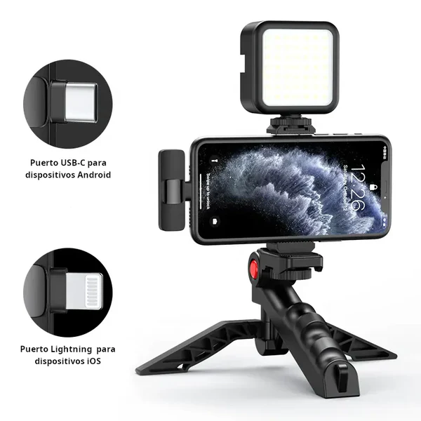 Compatible con la mayoría de teléfonos móviles, este kit te da todo lo que necesitas para llevar tus videos y transmisiones al siguiente nivel. ¡Haz que tu contenido destaque con la mejor calidad de video y audio!
